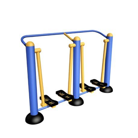 Ejercitador (Cama de abdominales doble). Tubo central de 4" cédula 30, estructura con tubo de 3" y 2" cédula 30, respaldo de lámina perforada calibre 16.